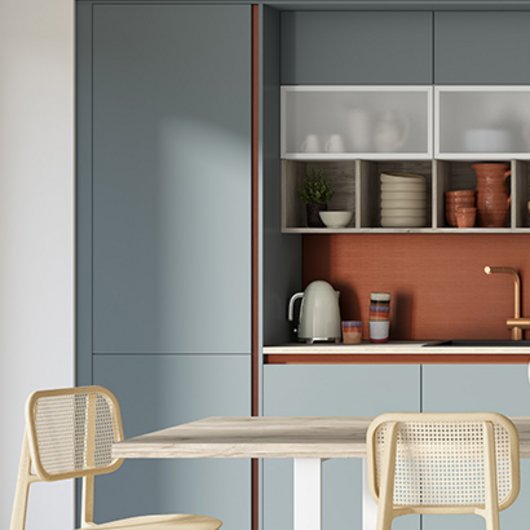 Place au pratique ! Grâce à un espace aménagé pour le télétravail, la cuisine STELLANA devient un lieu de vie central dans la maison.