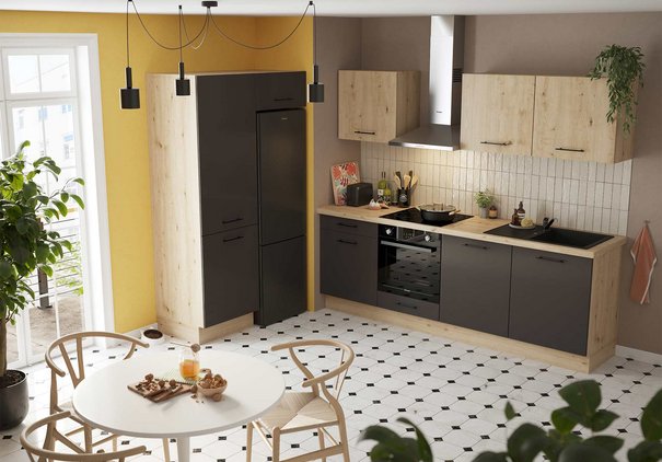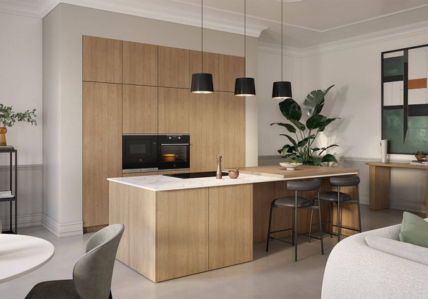 Un des premiers atouts d’une cuisine bois est la diversité de sa palette de couleurs et de ses effets de matière. Il n'existe pas une, mais plusieurs nuances de bois pour apporter la touche naturelle que vous recherchez dans votre cuisine. L’effet chêne, avec sa robustesse et son grain distinctif, est parfait si vous souhaitez un style à la fois traditionnel et moderne.