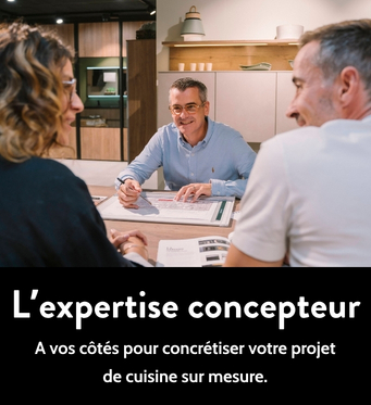 (1) Offre promotionnelle valable du 1er décembre 2025 au 6 janvier 2026. 3 appareils électroménagers (plaque, four, lave-vaisselle) ainsi qu’une hotte pour 1 € supplémentaire, le tout couvert par une garantie totale de 7 ans (2 ans de garantie légale + 5 ans d’extension de garantie, selon notice en vigueur). Offre valable à partir de 5 990 € TTC ou 7 990 € TTC d’achat de meubles de cuisine, selon le magasin (hors éco-participation, électroménagers, sanitaire, accessoires, pose et livraison) et le barème appliqué par celui-ci. Offre réservée aux magasins participants, sur une sélection d’électroménagers, non cumulable avec d’autres offres en cours, valable en magasin et sur internet. Voir conditions détaillées en magasin et sur cuisine-plus.fr. Photo non contractuelle.