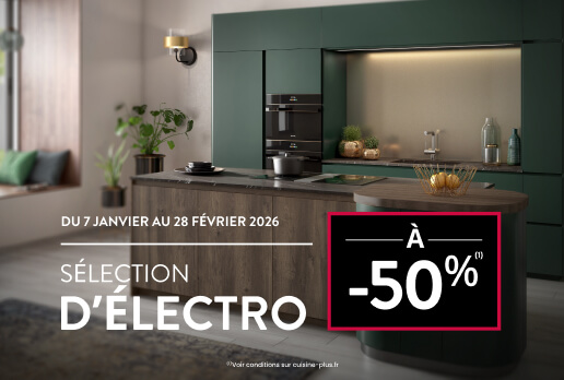 Jusqu'au 28 février 2026, profitez d'une sélection d'électro à -50% pour l'achat de votre cuisine.