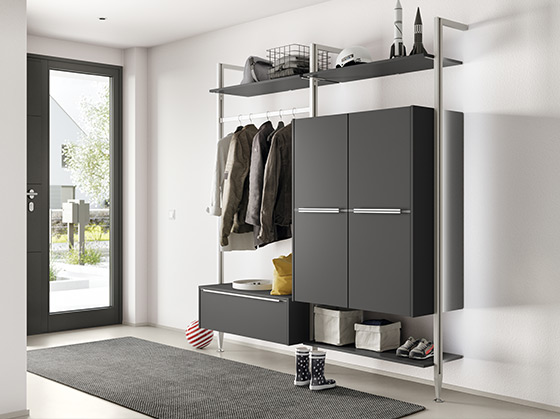 Concevoir un meuble sur-mesure nécessite une réflexion sur l'ergonomie de votre espace. Grâce à des équipements pratiques comme des tringles extractibles, des modules aux tailles variables ou des tablettes flexibles, même les espaces étroits se métamorphosent en entrée optimisée.
