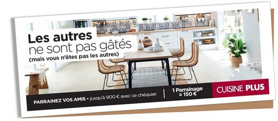 Lors de l'achat de votre cuisine chez Cuisine Plus, un chéquier de parrainage vous est remis.