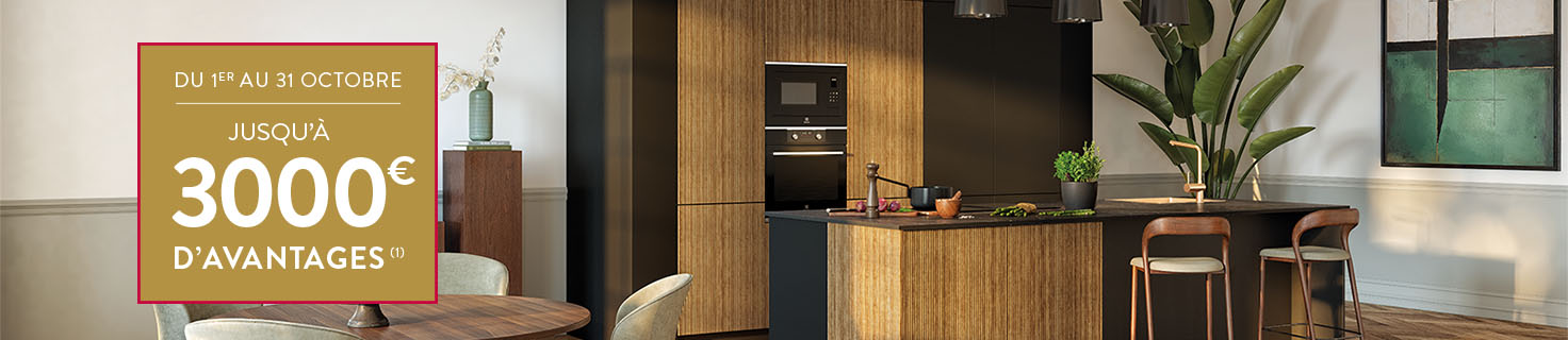 Jusqu'au 31 octobre, bénéficiez jusqu'à 3000€ d'avantages(1) sur votre nouvelle cuisine.