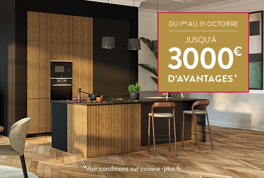 Jusqu'au 31 octobre, bénéficiez jusqu'à 3000€ d'avantages* à l'achat de votre cuisine.