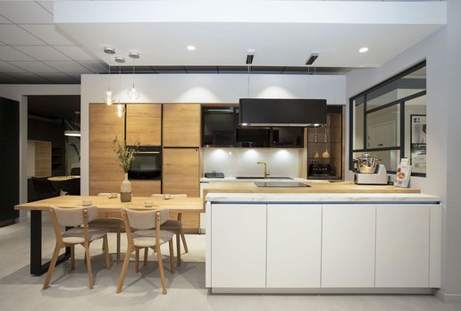 Découvrez avec nos experts les tendances actuelles en matière de cuisines ! Explorez toutes les possibilités qu'offrent nos modèles en terme de matériaux durables, de rangements pratiques ou encore d'électroménagers économes. Nous vous invitons à nous contacter au 02 55 41 64 40 pour prendre rendez-vous.